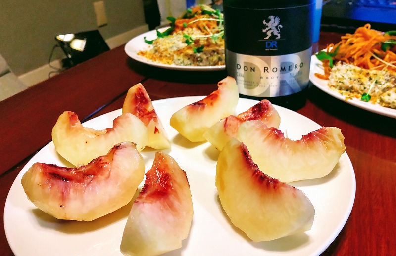個人的にはスパークリング・ワインに一番合うつまみは桃、桃に一番合う飲み物はスパークリング・ワインだと思っています。
