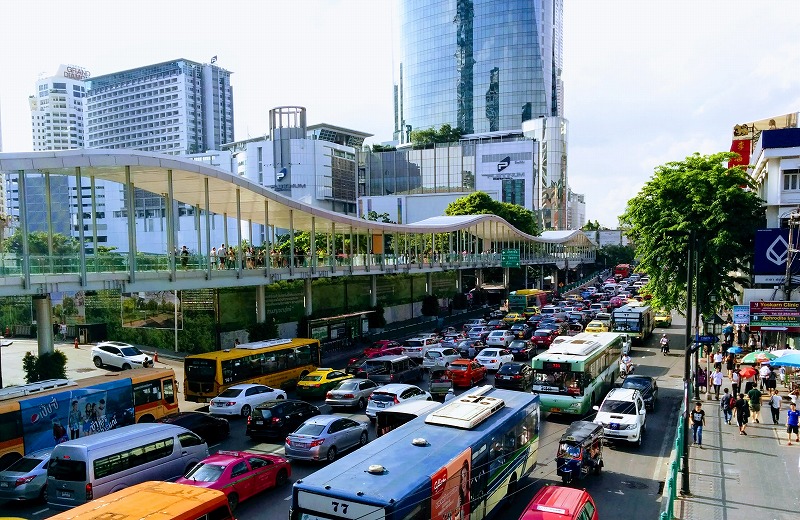 このように、ラッシュアワーはもちろんとして、日中も慢性的な渋滞を見せているバンコク中心部。