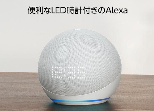 Echoシリーズの一つである「Echo dot」にも様々なタイプがあるのですが、今回購入したのはEcho dotの最新モデルで時計表示のある「Echo dot with clock(第5世代)」。