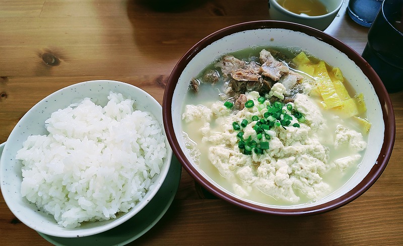 こちらがそのゆし豆腐そば。ご飯はデフォルトでセットになっています。