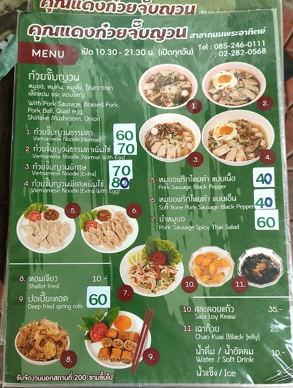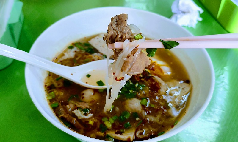ムチムチの麺と、豚でダシをとったスープがたまらないのですが、バンコクには提供している店が少ないのが難点。
