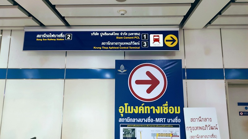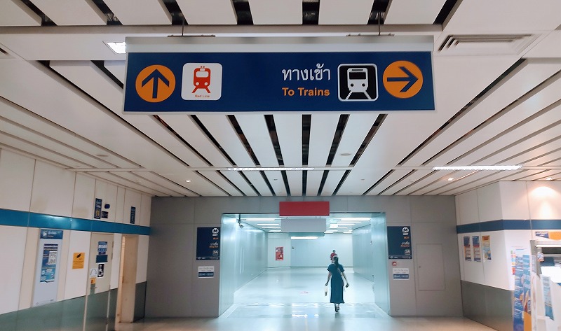 バンコク市内からレッドラインでドンムアン空港に向かう場合、まずはBTSかMRTを利用して、MRTのバンスー駅まで向かってください。