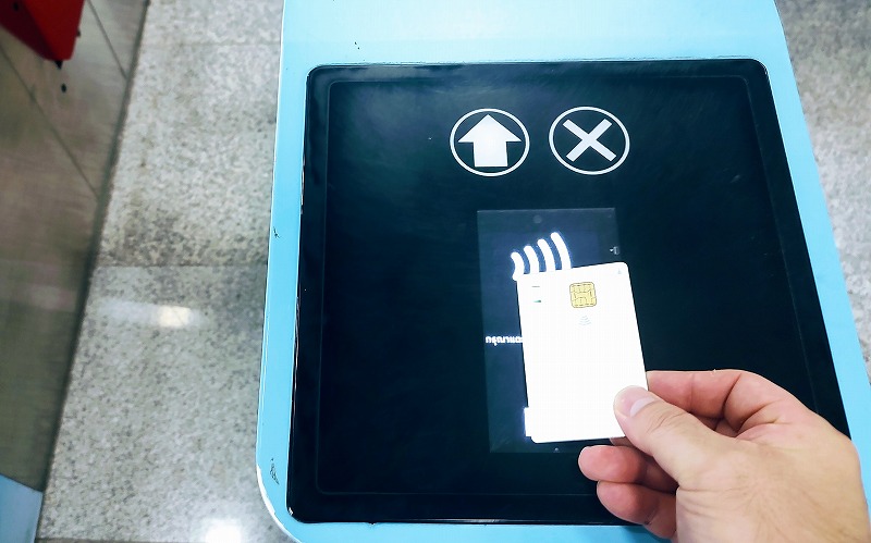 タッチレス決済は専用の改札口になっている点に注意。この水色の改札機を通ってください。